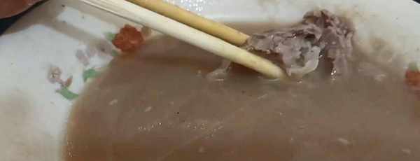 但是這傢店的生意幾乎是越罵越好,所以老板對於這些評價是不怎麼在乎的,但是有的時候也覺得委屈,覺得被人誤會也很惱火,雖然不能跟每一個顧客去解釋自己傢的糝湯做法,但是有的時候也忍不住會倒一下苦水。老板說,因為他們一直是用的這傢牛肉,所以他們傢的骨頭都是免費送的,免費的東西自己為什麼不用。