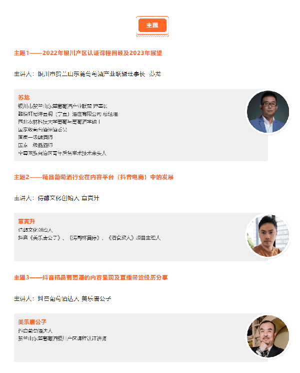 此次講師大會聚焦賀蘭山東麓葡萄酒銀川產區課程推廣,由銀川市賀蘭山東麓葡萄酒產業聯盟理事長、酩悅軒尼詩夏桐(寧夏)酒莊有限公司總經理蘇龍、侍醇文化創始人章寅升、抖音葡萄酒達人美樂唐公子三位嘉賓,分別從產區風土特色、精品葡萄酒行業在內容平臺(抖音電商)中的發展、抖音精品葡萄酒的內容呈現及直播帶貨經歷分享等多個方面進行,進一步強化產區課程推廣與市場需求的結合,逐步提升認證講師銷售、推廣能力,構建“線上+線下”的品牌推廣和銷售體系。