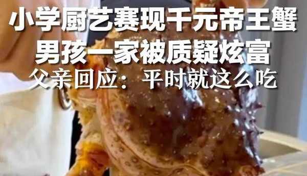 學生們在交作業的時候,每個人炒的菜都不一樣,山西的一所小學展開瞭做飯比賽,一位小學生,用上千元的帝王蟹參加這次比賽。我們隻能說:真的豪氣。對比其他的學生,他們的行為確實有點高調瞭。