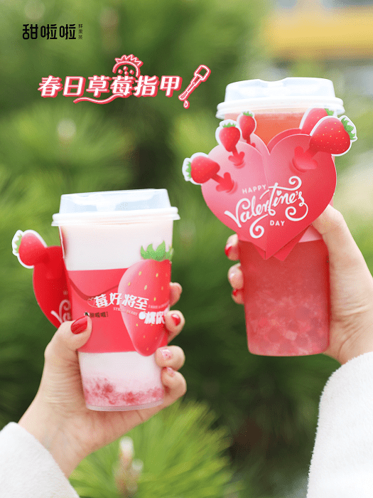 基於對消費市場的敏銳洞察,2022年起,甜啦啦全力主攻鮮果茶賽道。同年8月,品牌戰略發佈會召開,現場歐睿國際認證正式授予其“甜啦啦鮮果茶全國銷量領先”的市場地位認證函;2023年,全面貫徹鮮果茶戰略定位。據記者瞭解,截至目前,甜啦啦上新產品近10款,8款均以新鮮水果研制而成。其中“莓好CP”市場反響較為強烈,除瞭產品本身口感外,在包裝顏值上也下足瞭功夫,以粉色為主色調,滿載甜蜜和少女心的杯套俘獲一大批年輕消費者的心。