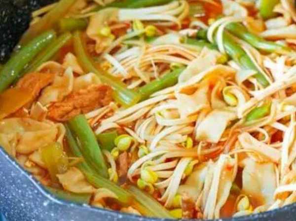豆角燜面在很多地方都有,尤其是北方比較常見,是用燉熟的豆角加入面條一起燜煮而成,面條吃起來口感非常筋道,在搭配上豆角等食材,讓面條的味道更加濃鬱。
