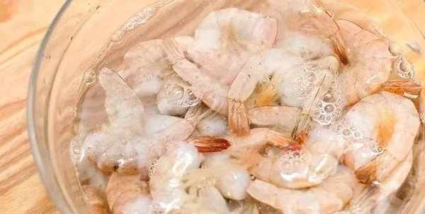3.將剝好處理後的蝦,放在水中浸泡清洗