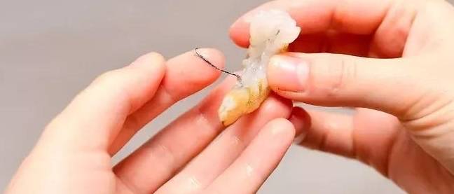 將串肉扦穿過蝦的尾部和最厚的部分,朝向頭部。