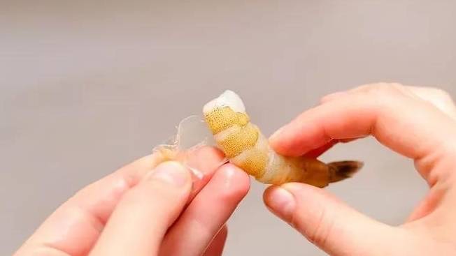 2.沿蝦身去掉蝦殼和蝦線和內臟。