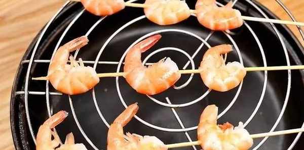 金屬或木制扦狀物都可以使用。如果用木扦,在把蝦穿上之前,把它們浸泡在水中10分鐘。這樣可以防止木扦受熱過度燒著。