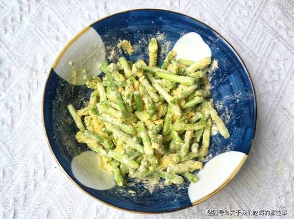 1、蒜瓣、小米椒、香蔥都切碎。蒜薹洗幹凈,切掉頭尾,再切成5厘米的長段,加入一勺鹽拌勻,醃制10分鐘。蒜薹出水後打入一個雞蛋,分多次加入玉米面抓板均勻,讓每根蒜薹都均勻地裹上一層薄薄的玉米面。