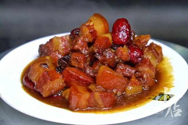 紅燒肉需要提前燒好裝在盆子裡,食客到店點菜後再用猛火收汁即可。精選上好的帶皮五花肉,經歷瞭幾個小時的燜煮,才有瞭這樣一鍋酥而不爛,肥而不膩的紅燒肉。