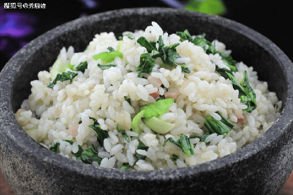 2.熱鍋燒油,放入蔥花、臘肉、豆腐幹炒香,加鹽翻炒均勻後盛出,裝入大碗中,加薺菜和糯米攪拌均勻,擺入蒸鍋內,開大火蒸,上蒸汽後蒸20分鐘,即可食用。