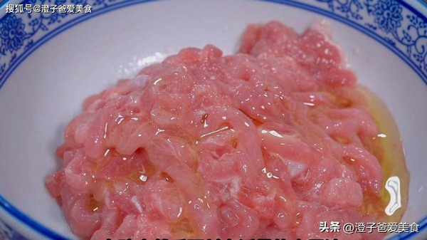 2.把處理好的蒜苔放進大盆中,加入多一點的清水,把蒜苔泡幾分鐘,再準備一塊豬裡脊肉,給它切成肉絲,放進碗中,入一勺食鹽,半勺的白胡椒粉,一勺黃酒,給它抓均勻,打入一顆蛋清,一勺生粉,適量的食用油,抓勻以後放在一邊備用。
