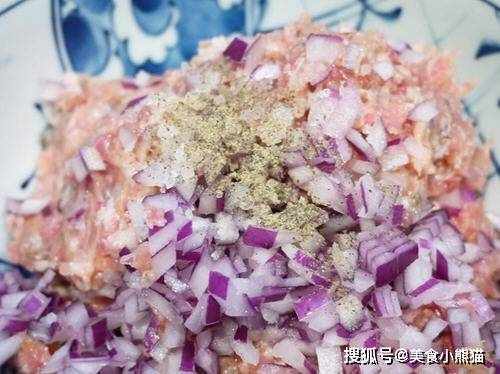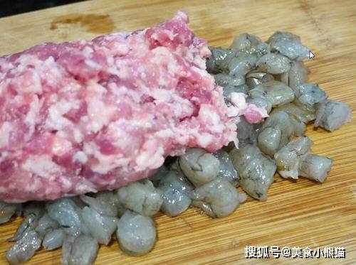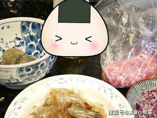 主料:帶殼蝦子半斤(約12隻)、豬絞肉(肥4瘦6)約半斤、洋蔥半顆