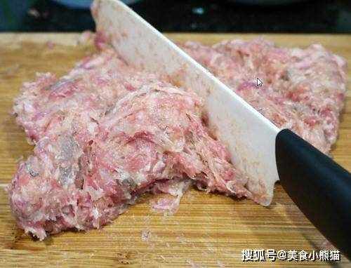 2、將處理好的蝦子切小塊後,再加入豬絞肉,用菜刀一起剁成泥。蝦+豬肉泥必須剁到蝦中有肉,肉中有蝦的分不開,並且有黏性為止。這個步驟雖然可以用食物處理機來幫忙,但其實這動作還頗 療愈的...建議大傢可以用這動作來發泄心中的不滿XD。
