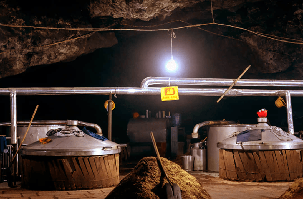 在窖期中要經常檢查,時常灑水,防止幹裂進氣,醉仙洞就是一個天然的大窖池,赤水河谷兩山對崎,一日之中此熱彼涼,常年恒溫恒濕恒氧,是天然的醬酒釀制基地。