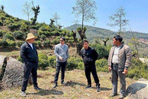 春是希望,春茶也是。三月,正是“綠葉”飄香時,眼下雲南省臨滄市雲縣湧寶鎮東書房昔本茶園滿山的茶樹正煥發勃勃生機,漫山遍野的嫩綠新芽散發出陣陣清香,令人心曠神怡。茶壟間,當地的茶農們正斜挎茶簍,嫻熟地將新芽采摘入簍,昔本茶園的茶農們又到瞭一年中最忙的時節。3月29日,雲縣縣委常委、副縣長龔寅時,湧寶鎮黨委副書記、鎮長楊寶熹,鎮人大主席王雷等領導一同蒞臨東書房昔本茶園,視察並瞭解瞭茶園春茶的采摘以及種植情況,對東書房在昔本茶園的投產工作給予瞭高度的評價與肯定,並對春茶采摘的相關工作進行相關指導。