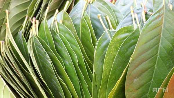 清洗幹凈的猴栗樹葉(央廣網發 謝達意 攝)