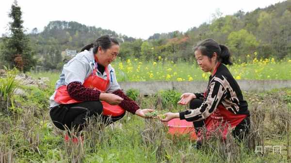 村民正在采摘清明菜(央廣網發 張碧桃 攝)