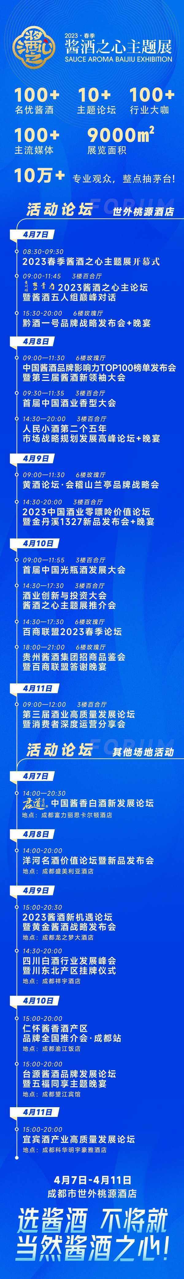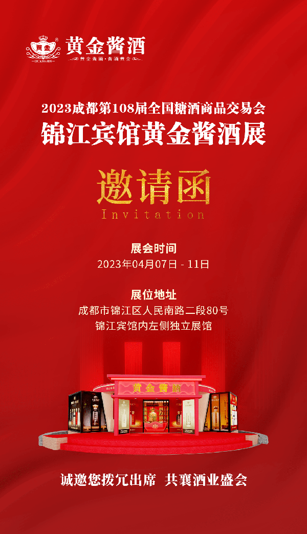 4月7日-11日,2023第108屆全國糖酒商品交易會&黃金醬酒展將於成都市錦江賓館內獨立展館開展,一起感受黃金醬酒創新升級的新體驗,敬請關註。