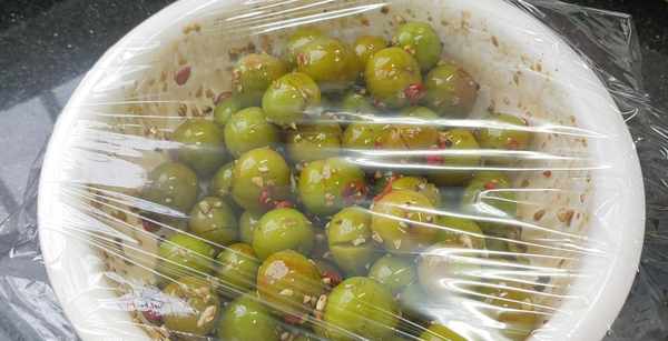 第五步:充分拌均勻後把它封上保鮮膜,放到冰箱冷藏半個小時以上讓它入味,冰鎮後的李子吃起來口感更佳更入味好吃,第二天吃也非常不錯哦。