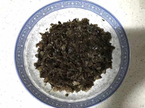 1、提前準備適量的幹木耳,在水中徹底泡軟,處理掉硬根的部分,洗幹凈,然後切碎。