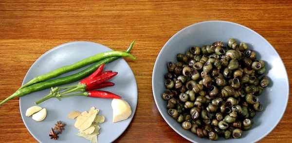 螺螄,青紅尖椒,大蒜,生薑,八角,香葉。