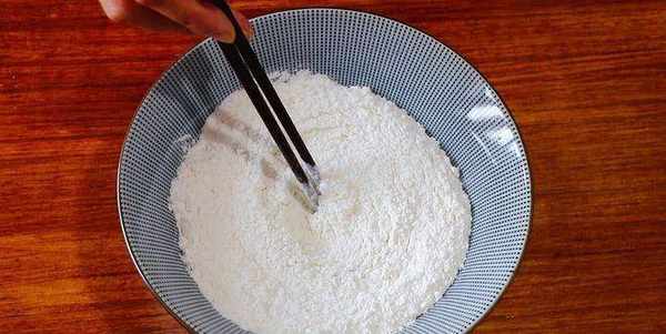 1、 把300g的面粉和5g鹽倒入同一個大碗中混合均勻。