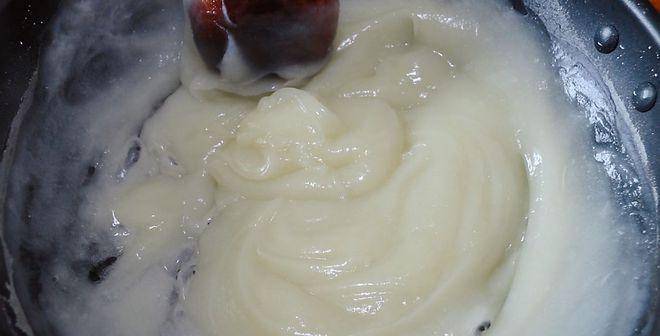 3、熬好以後倒入容器中,蓋上蓋子放涼,放入冰箱冷藏。