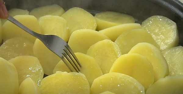 4.蒸熟的土豆用叉子紮一下,很快穿透的話說明熟瞭,把它取出來放涼。