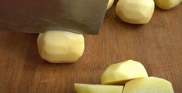 1.準備一傢人要吃的土豆,清洗幹凈,去掉外皮。然後對半切開,個頭大的話就再切一下。