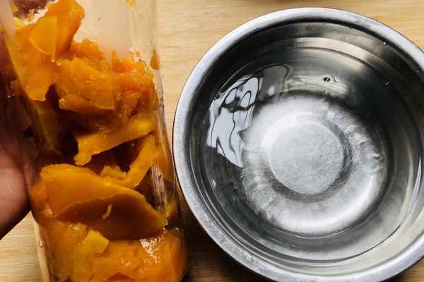 7.同樣的把南瓜裝入料理機中,加入適量的涼開水。