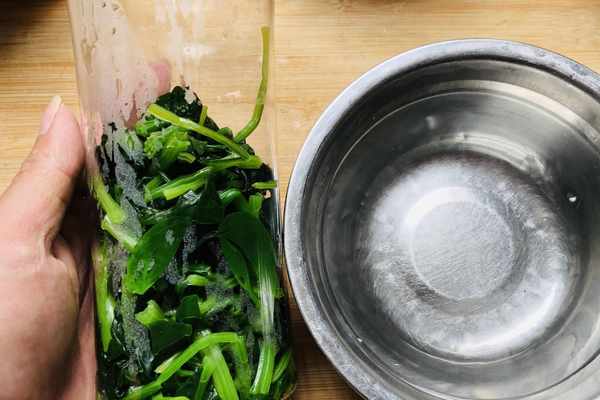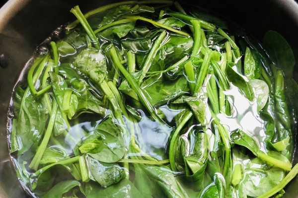 2.菠菜放入燒開的水中,焯燙30秒後撈起。