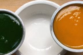 3.用來裝菠菜羹和南瓜羹的容器,最好選擇有“嘴”的,能夠讓湯羹倒入的方向容易控制。