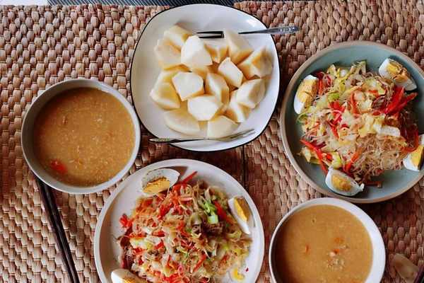 二、紅薯燕麥小米粥+肉絲圓白菜炒粉絲+水煮雞蛋充分利用傢裡的廚房電器,做早餐很方便省時。小米紅薯粥,電飯鍋預約煮,小米淘洗加入紅薯小方塊和食材12倍量的凈水,定時預約稀飯就好。