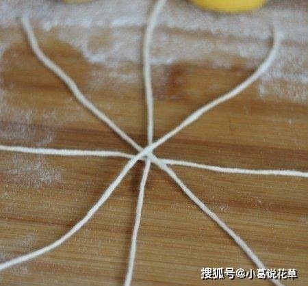 將小面團放在線條交叉點的中心。