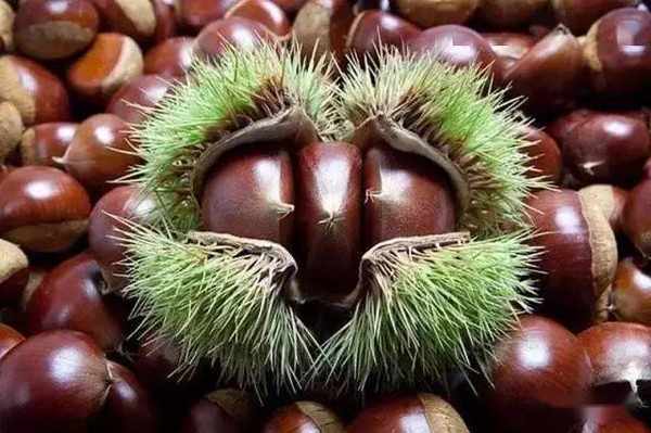 板栗俗稱栗子,有“幹果之王”的美稱,可生食、糖炒、磨粉烹菜等,栗子可帶糧,與棗、柿子並稱為木本糧食,是一種價廉物美、富有營養的滋補品和補養的良藥。