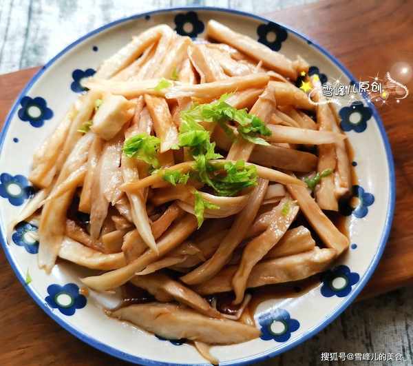 1,杏鮑菇洗凈切成厚片,用手撕開成為段。