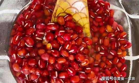 首先第一步,我們準備超市買回來的紅豆適量,提前浸泡一個晚上,這樣更容易煮爛煮熟而且煮出的顏色也比較好看,如果時間來不及泡,可以將買回的紅豆放冰箱冷凍3-4個小時,然後直接倒入鍋中煮,也是很容易就煮爛的。