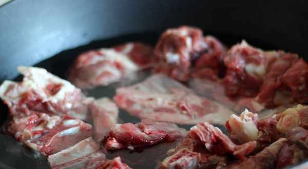 4:然後把羊肉放入鍋中,加入適量的水。