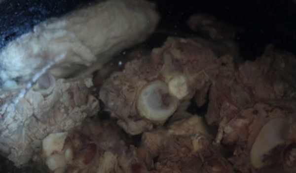 1:羊骨冷水下鍋,進行焯水,去掉水沫和雜質。