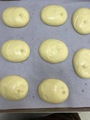 7、擠好後不用震盤,上火160下火150大約12-15分鐘,微微上色就可以瞭,具體可以根據自己的烤箱爐溫作調節。