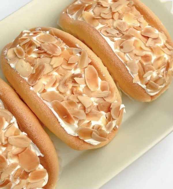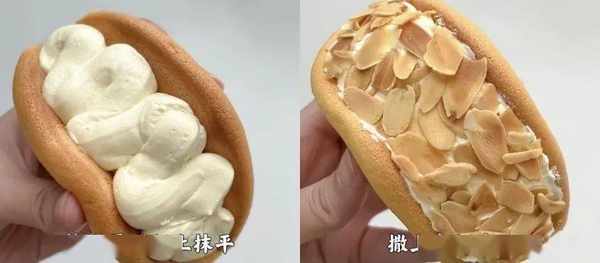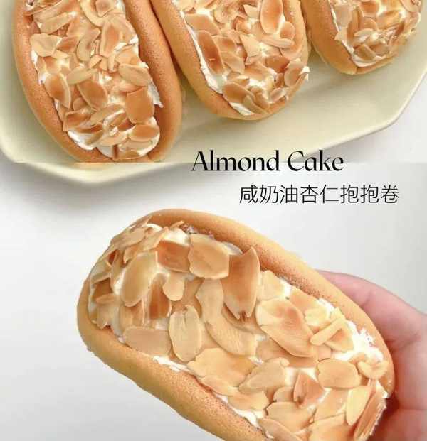 6.擠入蛋糕胚上抹平,撒上杏仁片即可