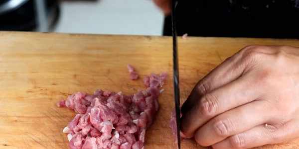 把牛肉全部切成小丁裝碗裡面。