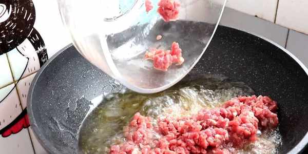 翻炒至牛肉變色以後加入少量的白酒去腥味,繼續用小火翻炒。