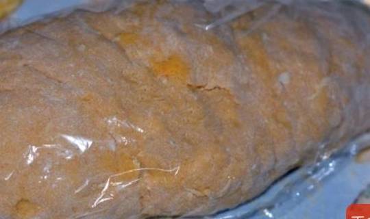 3.然後將柿子與面粉攪拌均勻,和成不軟不硬的面團,蓋上保鮮膜醒十五分鐘