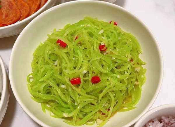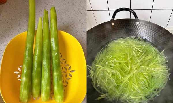 ①萵筍口感清脆,水分充足,富含膳食纖維,能清腸,刮油脂。準備好幾個萵筍,去皮,洗幹凈。然後切絲,下鍋焯水1分鐘撈起,炒的時候口感更脆。