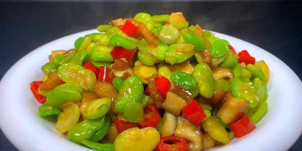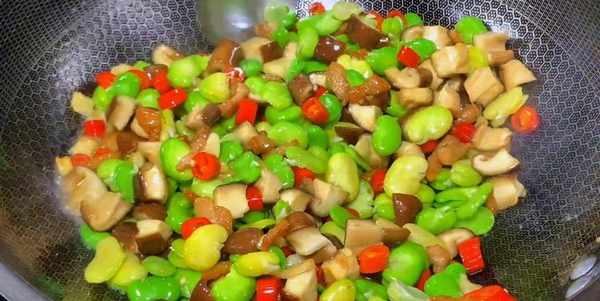 7.將蠶豆和香菇翻炒均勻,倒入調好的料汁,快速翻炒,將鍋內炒至湯汁炒至粘稠,就可以出鍋瞭,一道好吃又簡單的小炒蠶豆就做好瞭,喜歡的快點試試吧!