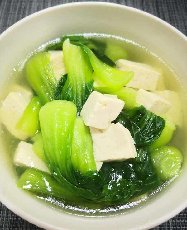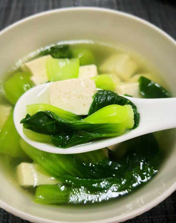 青菜、豆腐都富含鈣,豆腐中還富含優質蛋白等多種人體所需營養素,搭配在一起做成湯,營養又鮮美。