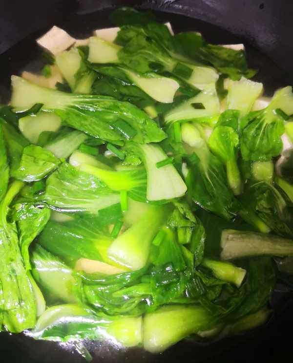 豆腐先放沸水裡焯水30秒撈出控水,另起鍋,加少許油,倒入蔥花炒香,加適量水,煮開後倒入豆腐煮一兩分鐘加入青菜,加點鹽,煮至青菜斷生即可。