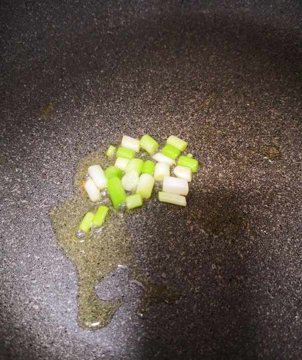 鍋裡倒入少許油,倒入蔥白炒出香味。