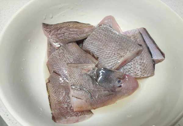 1.現在正是鰨魚的季節,而且口感非常的鮮嫩,特別好吃。買回來用流動水將它的肚子裡面一塊給它洗幹凈,還有魚鰓也要處理掉。洗幹凈瞭之後放在案板上把它的尾部去掉,然後切成小段切好後放在盆裡面;