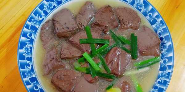 第3道:【蔥香鴨血】鍋裡煮開水,把鴨血弄小塊放入鍋裡煮,小火煮至鴨血浮起至熟,撈出來,另一鍋燒幹水油熱,把鴨血倒入鍋裡煸炒幾下,加入適量開水再次煮開,加入些勾芡汁蔥段拌勻,味美又滑的鴨血就可以開吃瞭(鴨血已帶鹽,所以不用下再鹽瞭)。