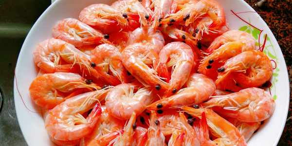 第8道:【白灼蝦】首先把蝦的蝦線挑掉,鍋裡加入清水、料香、薑片大火燒開,把蝦倒入蝦裡煮開,接著再煮5分就可撈起瞭,醮料:碗裡加入蒜蓉、生抽、小米辣,然後把熱油倒入碗瞭,就可以拔掉蝦殼醮料下飯吃瞭。